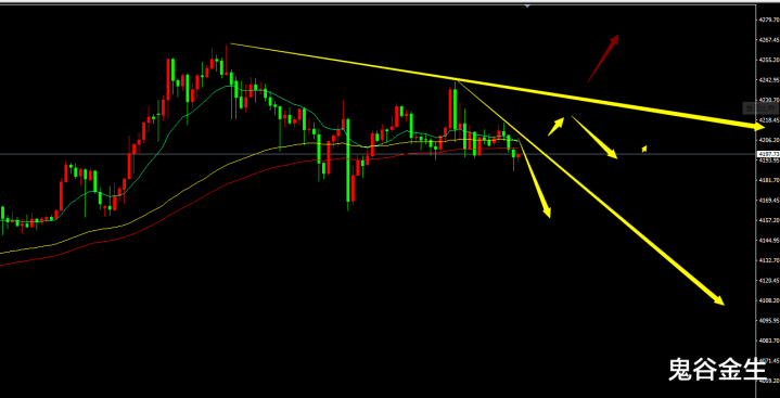 但是昨日黄金不升反蒋,为何?原本以为ADP数据公布后,黄金会一飞冲天,但是冲击4241后就掉头向下,难道是高位诱多,其实不然,鬼谷认为更多的是就好比太多人知道要上,一辆车出发,但是上车的人太多了,那么突然掉头会甩掉不少人,所以此时此刻我们要做的就是顺势而为,永远不要被主力甩掉,者并不意味着我们要一味的去跟多,因为你是散户别人是机构,你的仓位永远不跟上的,我们能做的就是做好自己,短空中多;