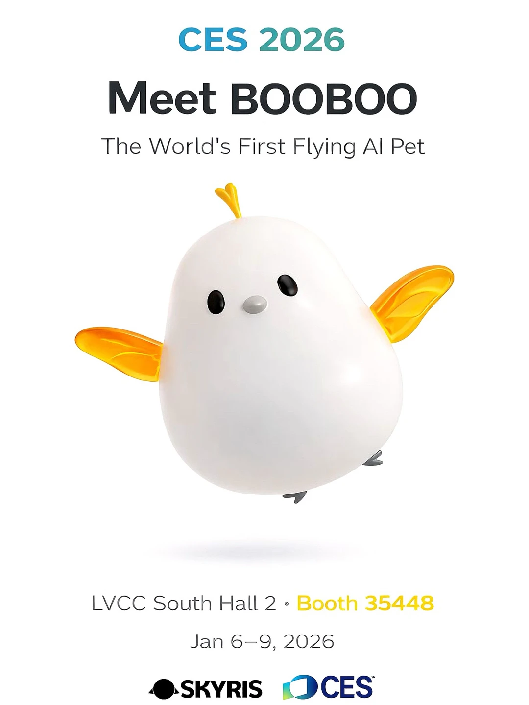 01 从毛绒玩具到硬核机器人据不完全统计,今年CES参展的AI陪伴类企业超30家,来自中国的厂商至少就有20家,其中不乏产品还未正式发售、第一次参加CES的创业团队。例如能飞、会主动靠近用户的飞行宠物“BOOBOO”,其制作公司来自深圳的宇灵无限(Skyris),团队此番来CES主要是为了用户共创和概念前测,虽然并未带实物到现场,但也吸引了不少参会者驻足。
